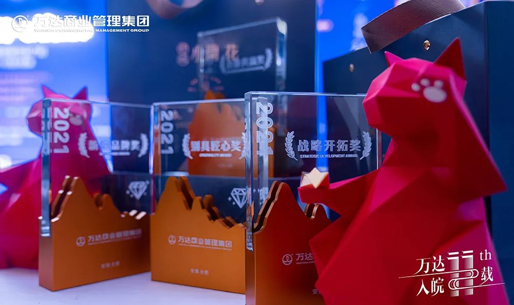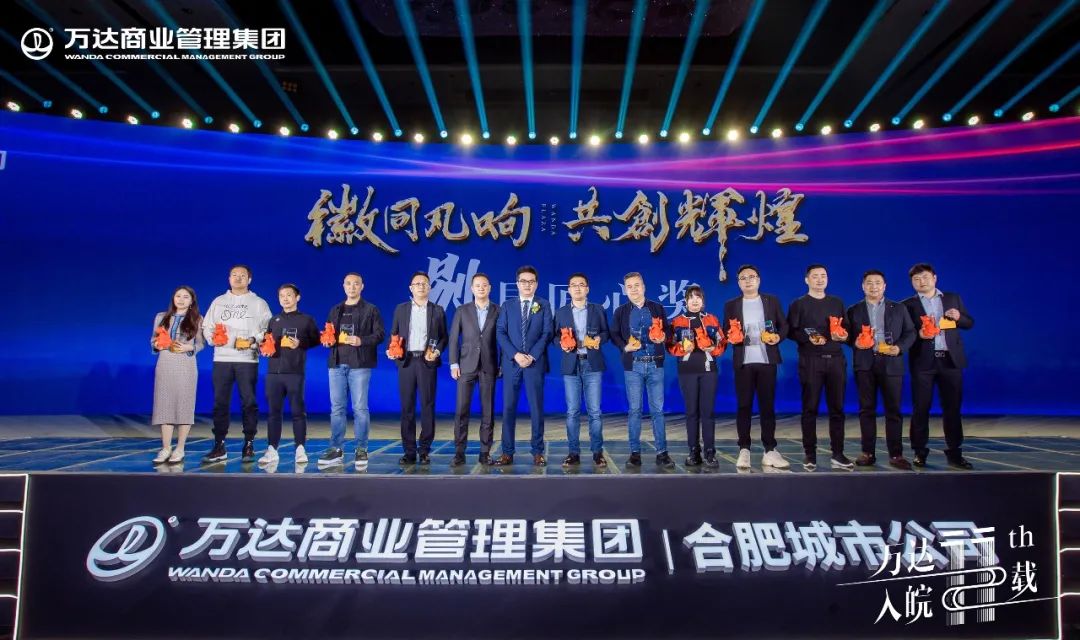 万达自2010年进入安徽,商业规模不断扩散,11年时间,从1城到13城,从1座万达广场到24座万达广场,雄踞安徽商业领头位置!11年间,安徽万达管理商业面积已超过300万平方,从业人员超过70000人,毋庸置疑安徽万达商管已成长为安徽最具规模,最具实力的商业管理公司。万达的发展,离不开各位品牌商户的大力支持。截止目前,联发品牌数量已突破500家,合作商户突破6000家,业态涵盖餐饮、儿童、体验、服装、精品五大类型。其中在2020年的疫情期间,为减轻疫情对商户造成的压力,万达商管集团率先在行业内做出表率,尽最大努力帮助扶持商户经营度过难关。万达商管集团对全国所有万达广场商户1月29日-2月25日期间租金给予一定减免,总金额近40亿元;自2020年4月份开始,万达商管集团在全国范围内共计派发4亿元全民消费券专项补贴,其中合肥城市公司20座广场补贴金额达1283万元,极大缓解商户经营压力。正是因为各位商户的鼎力支持,才会有互惠共赢的成功合作,为了感谢一直陪伴的商业合作伙伴,特颁发战略开拓奖、新锐品牌奖、别具匠心奖、合作共赢奖,辉煌11载,感恩有您!万达人从零开始,在陪伴中见证成长,从尝试到坚持,从沉淀中收获成功。